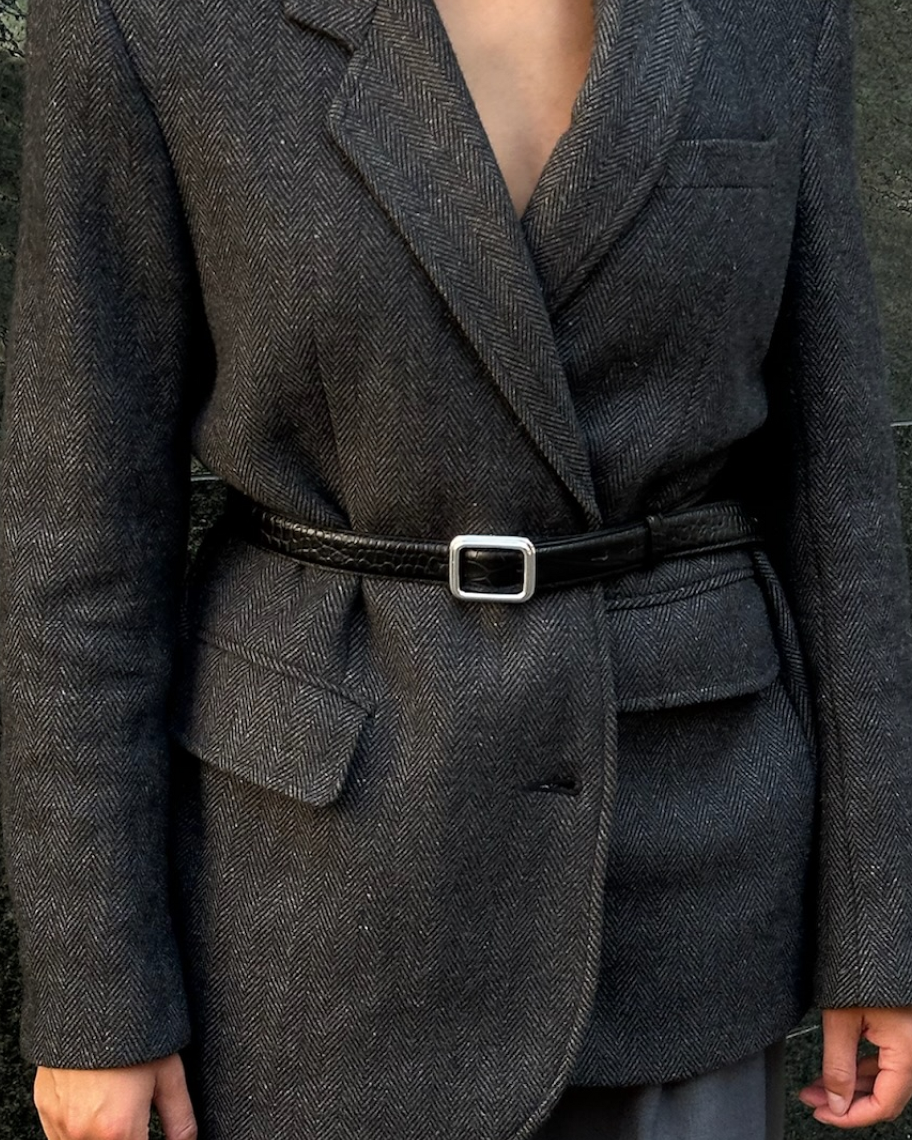 Leather accessories will always be a classic item for us to rely on when dressing for day-to-night occasions. As a natural extension of the LIÉ LEATHER universe, The Georgia Belt is now being introduced as a coherent part of The Staples Collection. The ultimate classic leather belt with a new polished signature hardware crafted with a subtle design with strong associations to the existing jewelry pieces.