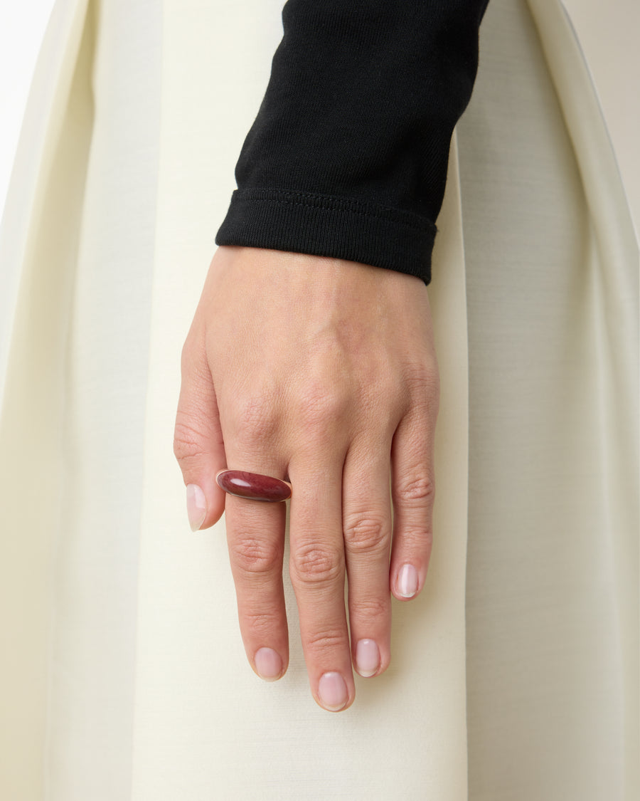 Minimal in form yet full of presence, the Beatrice Ring is designed for stacking, layering, and personal expression. A smooth, curved red mookiate gemstone is set into a polished silver or gold band, creating a harmonious interplay between organic form and clean lines.