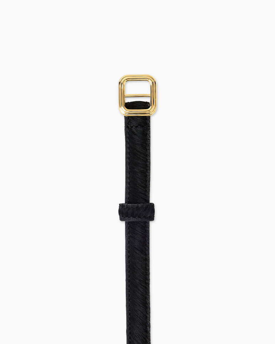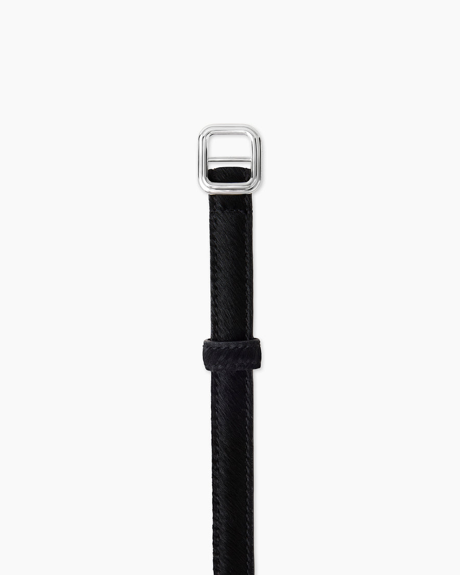 Elevate your wardrobe with the timeless and elegant wardrobe staple, The Georgia Belt Slim in Black Calf Hair. Expertlycrafted from 100% ItalianCowLeather, thisbeltshowcases an exquisite finish thatadds a touch of discreet detail to any outfit.
